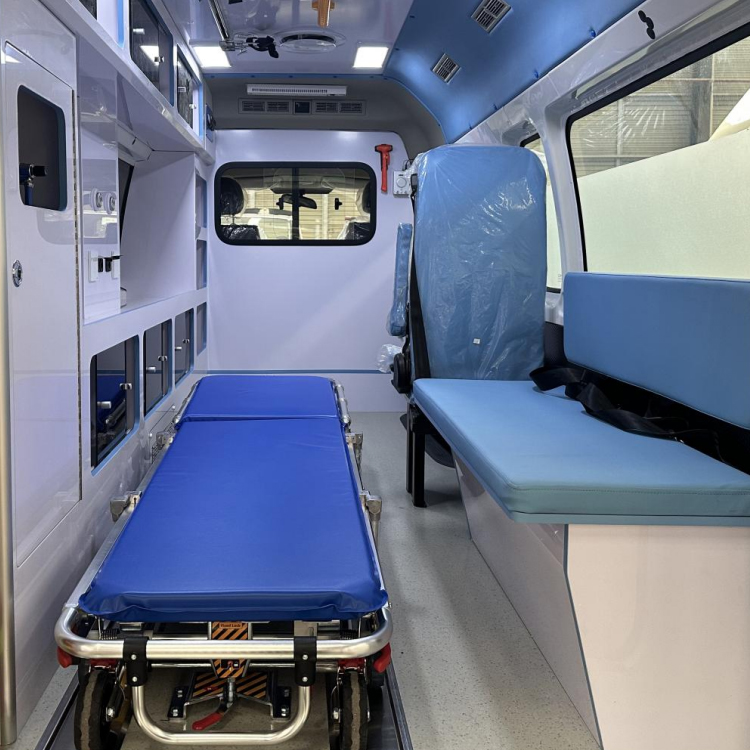 ●Steel reinforced frame structure is used for safe and reliable design. The vehicle body is equipped with sliding doors on the right side, and the rear end uses a tail structure with a large opening width, which is convenient for medical staff and patients to get on and off, as well as for stretchers.