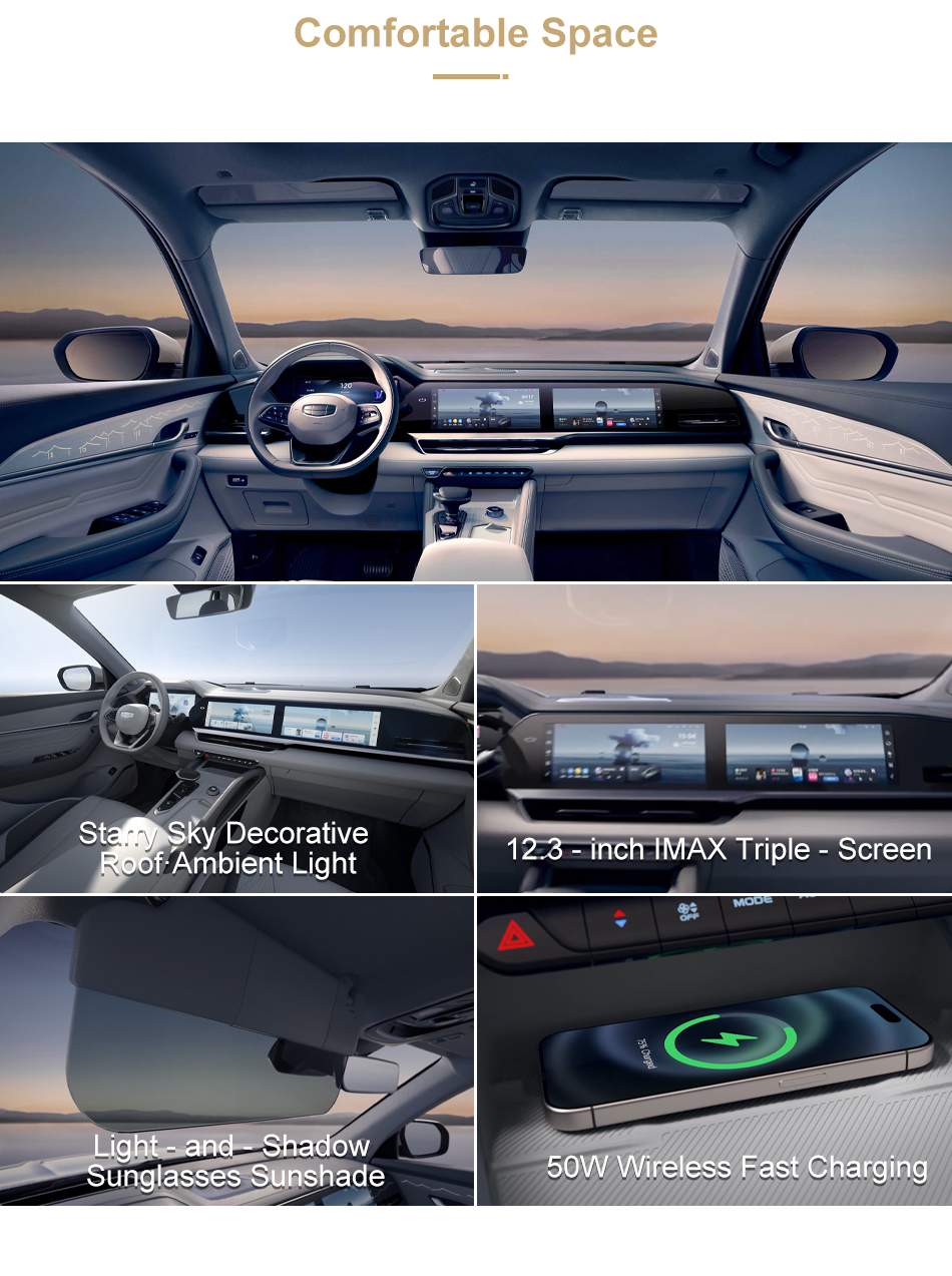 Qualcomm Snapdragon 8155 chip (upgraded to Qualcomm Snapdragon 8295 in 024), industry flagship-level automotive chip, with significantly improved computing power. IMAX three-screen: 12.3-inch full-color LCD instrument 12.3-inch central control screen 12.3-inch co-driver entertainment screen (some high-end models), supporting multi-screen.