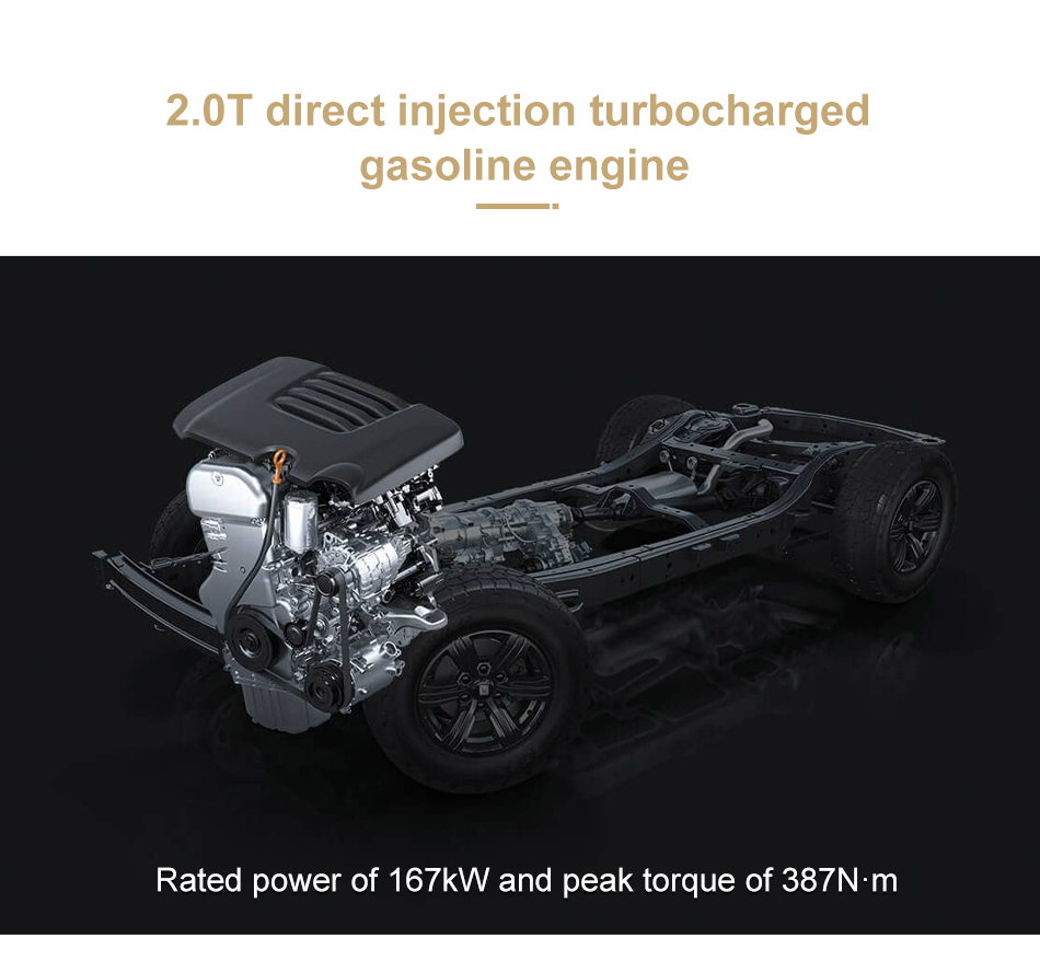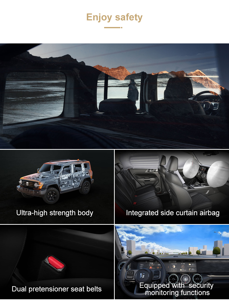 Provides a variety of driving modes and terrain mode switching, including standard / comfort, economy, sports sandy, rock, mud, highway, snow, off-road, etc., which can be selected according to different road conditions and driving needs, to meet various off-road.