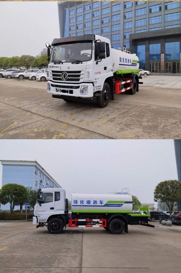 New 3.0 paint, the actual volume of the tank is 12 cubic meters, Material: The tank is made of Q235, the thickness of the partition is 3mm, the thickness of the carbon steel tank is 4mm, the thickness of the head is 5mm, the large diameter straight through ball valve, Sprinkler function: Front, rear sprinkler, side spray, high position sprinkler. Optional aluminum alloy three-way, thickened main pipeline (76) Optional cast aluminum fittings: Alloy elbow three-way, aluminum alloy flange three-way, aluminum alloy pump outlet four-way, aluminum alloy pump inlet straight through, the mold is pressed at one time without welds, to avoid leakage, standardized design, good interchangeability, easy maintenance and replacement of parts, aluminum alloy material is more lightweight, beautiful and practical, which is conducive to improving the grade of products.