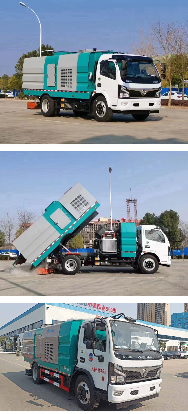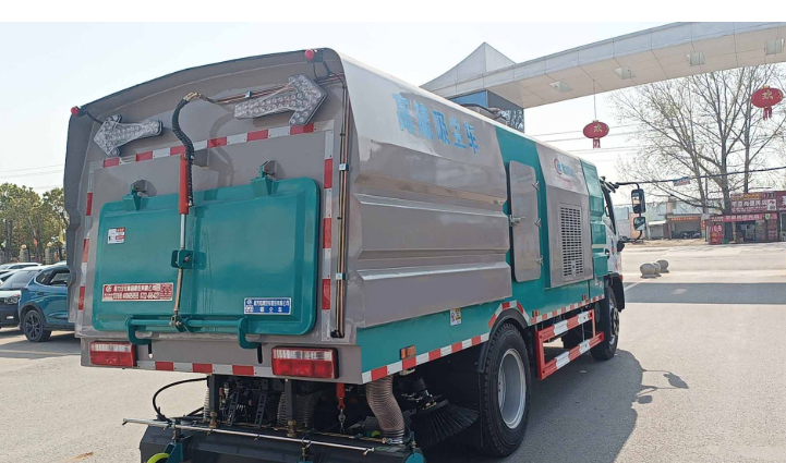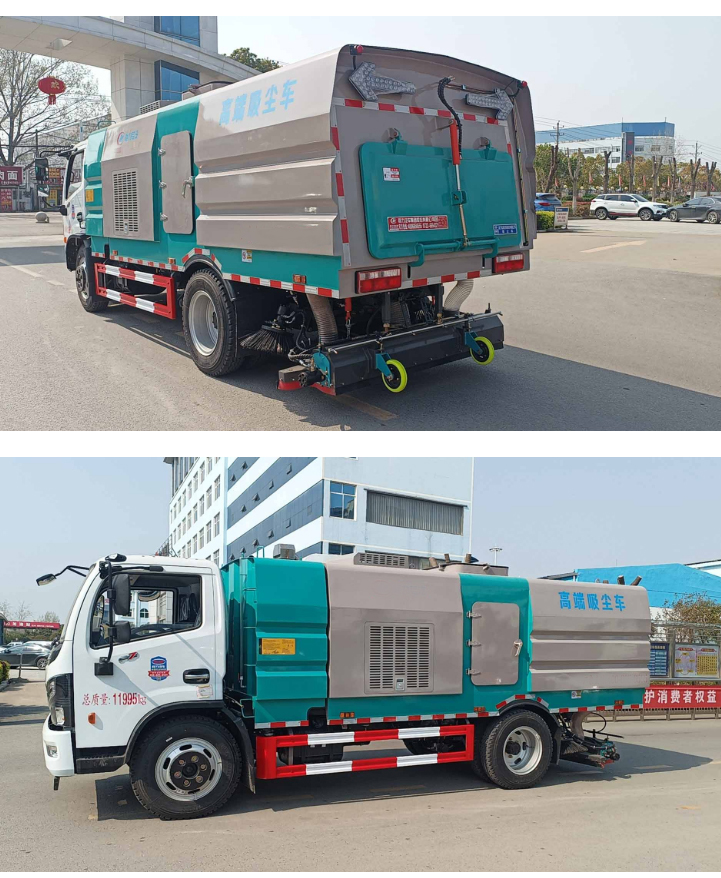 Jiangling 8 horsepower auxiliary engine; Megafox control switch, control box; Haipurayis valve group, oil cylinder; stepless speed automatic clutch; Morning wind maintenance-free centrifugal fan; precision garbage box filtration system; imported pulse valve; manual pump emergency system tail light emitting diode arrow light. The rear-mounted wide-width suction mouth adopted, and the suction disc is equipped with a roller brush, and the suction disc is equipped with left and right brushes, vertical filter cylinder structure, and it is convenient clean the dust. Manual pump emergency system, when the auxiliary engine stops, the garbage box can also be lifted. Water tank capacity: about 2 cubic, garbage box capacity: 5.5 cubic, vehicle color: announcement color, other configurations are strictly made according to the standard.