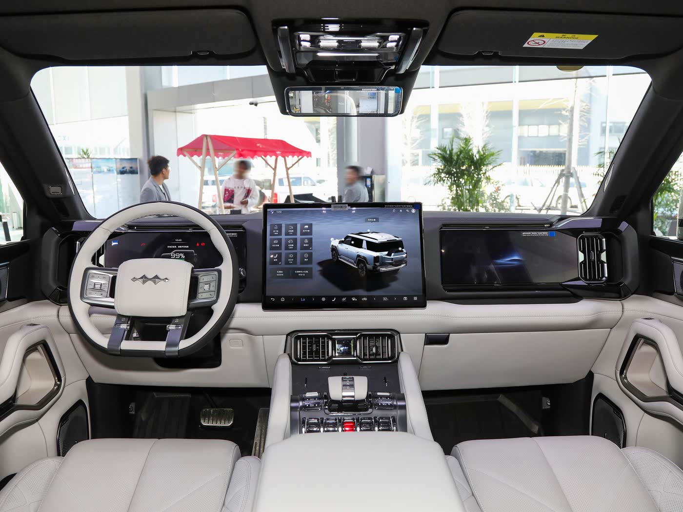 The cabin features a new "Snow Peak White" exclusive color scheme, paired with leather-wrapped seats, real wood trim, and metal-textured buttons It is equipped with a 12.3-inch full-LCD instrument panel, a 17.3-inch central control screen, and a 123-inch co-pilot screen, which can achieve multi-screen interaction. There are also features such as an in-vehicle refrigerator, a 4K ultra-wideangle roof camera, and a 50-inch AR-HUD.