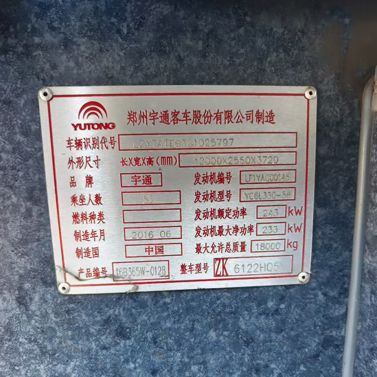 ● National V emission standard ● Registered in 2016 ● Non-operational, model 6122. High-end airbags.Northeast with double-layer glass. Dual doors, retarder. ● Yuchai 330 diesel engine. The car is in excellent condition