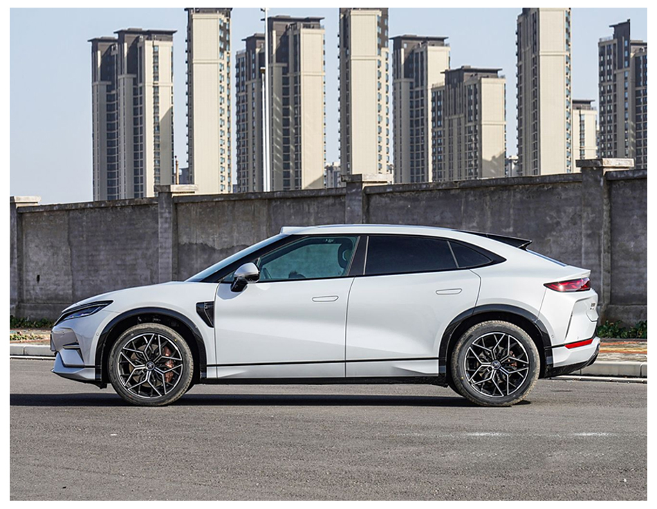 Continuing the family's "Dragon Face Aesthetic" design language, the front black trim and narrow long headlights are, with the headlight group featuring all LED light sources and functions such as automatic headlights. The body adopts a cross-over coupe SUV style, with frameless doors, electric door handles, a sloping rear shape, an active electric tail wing, and a rear diffuser shape, creating a strong sense of sportiness.