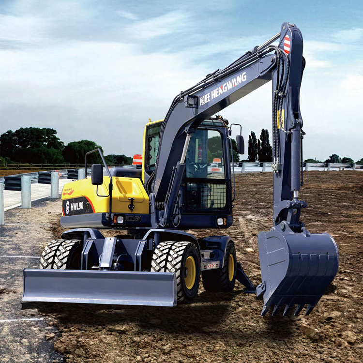 HWL-90 wheeled excavator, professional wood grabber, extended arm, hydraulic double outriggers, widely used in municipal engineering, earthwork engineering, landscaping, road repair, cement concrete crushing, river dredging, forest farm grasping Wood, engineering drilling, concrete leveling, loading and unloading and other engineering operating environments, the wheeled excavator travels fast, with a maximum speed of 35 km/h, and can quickly replace various operating tools. Buckets, breaking hammers, rotary grabs, augers, vibrating rammers, electric suction cups and other attachments can meet various engineering needs of customers, and are easy to replace and operate.